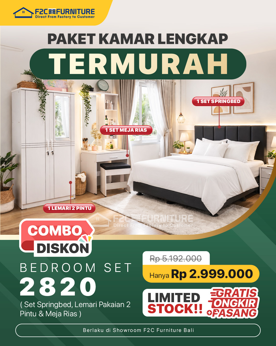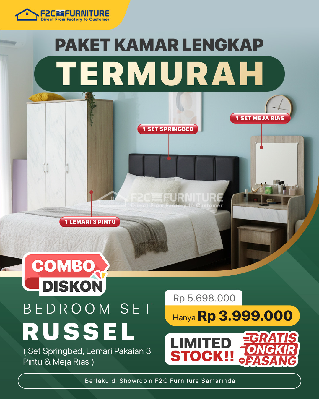 Dapatkan paket kamar lengkap termurah dengan memilih cabang anda